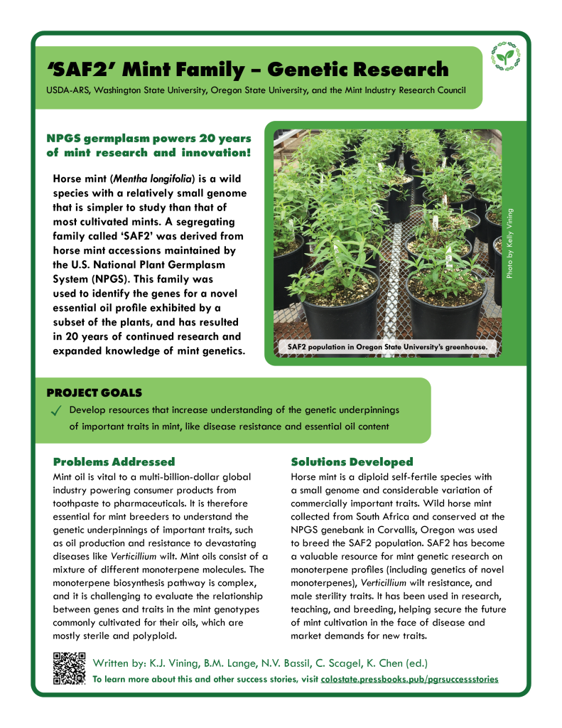 This work (Plant Genetic Resources: Success Stories by Eds. Gayle M. Volk; Katheryn Y. Chen; and Patrick F. Byrne) is free of known copyright restrictions.